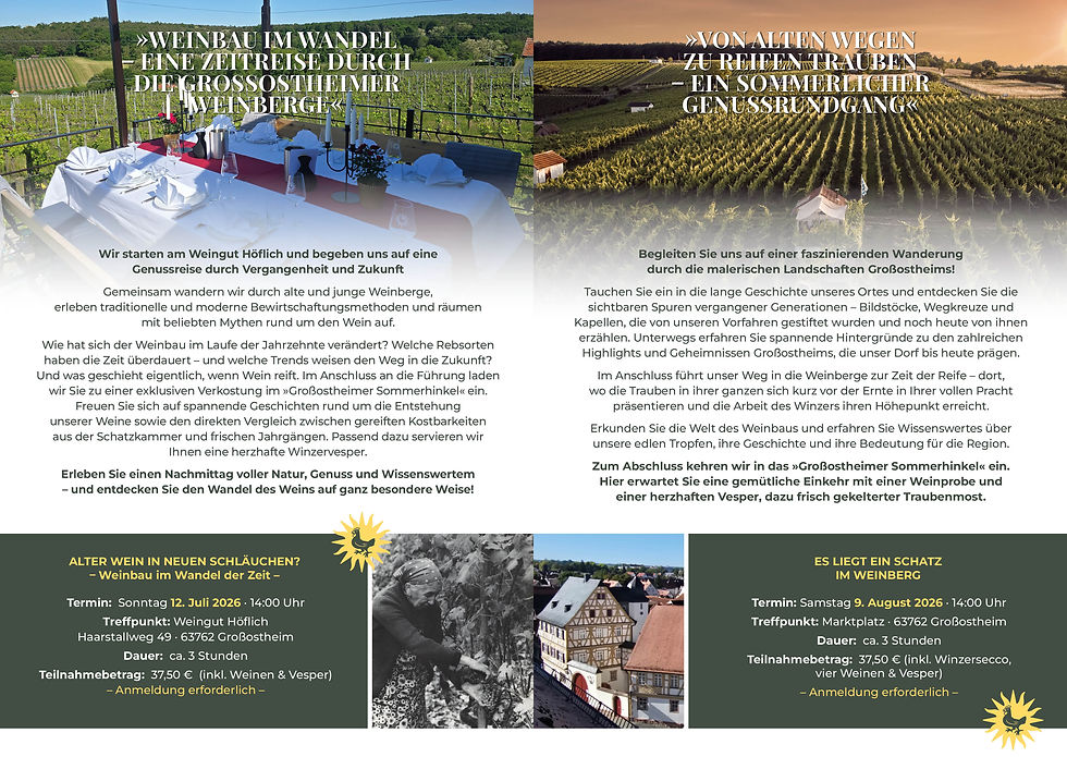 Im Anschluss gibt es nach der Station im „Sommerhinkel“ wieder die Möglichkeit im Weingut Höflich einzukehren und den Tag gemütlich ausklingen zu lassen.